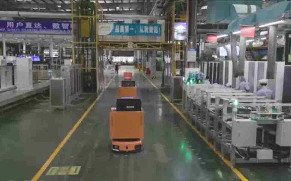 为车载冰箱物流配送打造的智能解决方案,,,包含产中物流通过潜伏举升AMR搬运至线边,,,,产后成品物流智能仓储,,,,流程包含产中物流智能齐套入库,,线边安灯叫料AMR智能配送至线边,,,,成品入库、、、出库,,,,通过无人堆高车机器人,,,,智能仓储管理替代人工作业管理,,,实现更高存储、、、、更高效率、、、更具柔性化的解决方案。。。